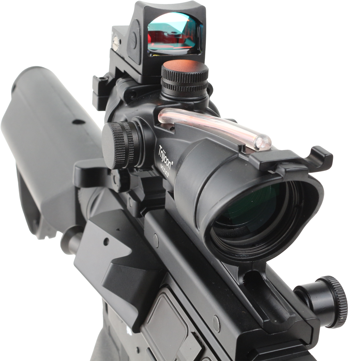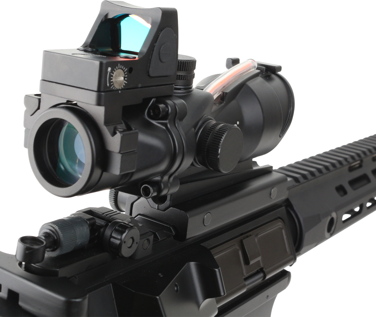 Прицел призматический Trijicon ACOG 4x32 (ACOG4X32+RMRRedFiber) для страйкбольных приводов.