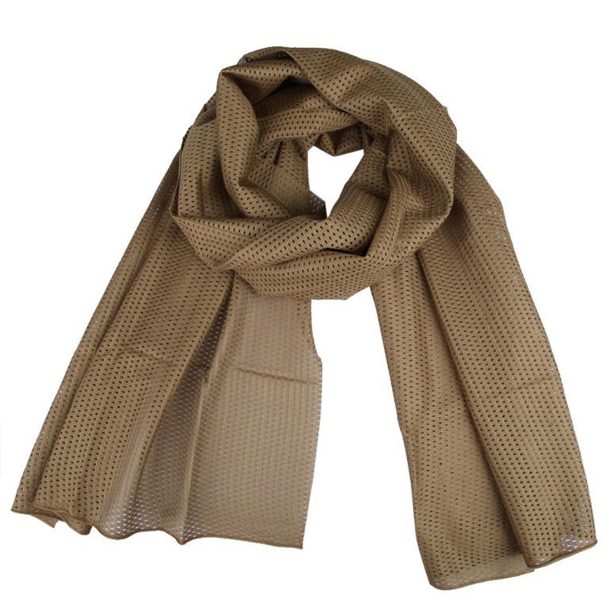 Данный шарф изготовлен из лёгкой и перфорированной (для лучшей вентиляции) ткани и предназначен для защиты шеи, лица, головы от высоких или низких температур, от ветра и летящего песка. Универсальность шарфа-маски заключается в том, что его можно носить массой способов.